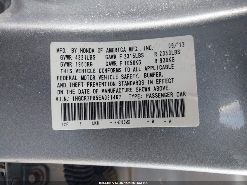 • 1HGCR2F85EA031467