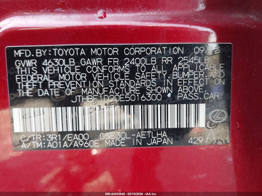 • JTHBF1D20E5016300