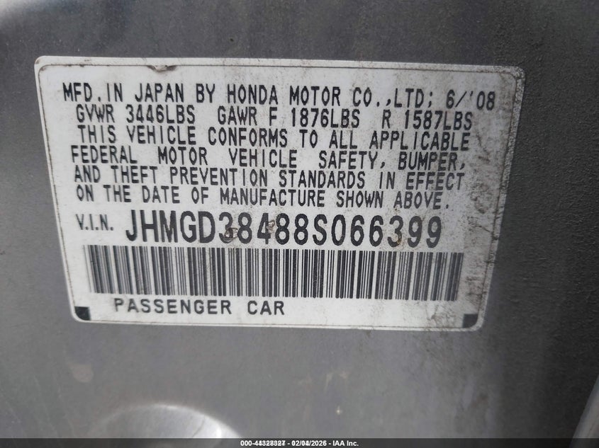 • JHMGD38488S066399