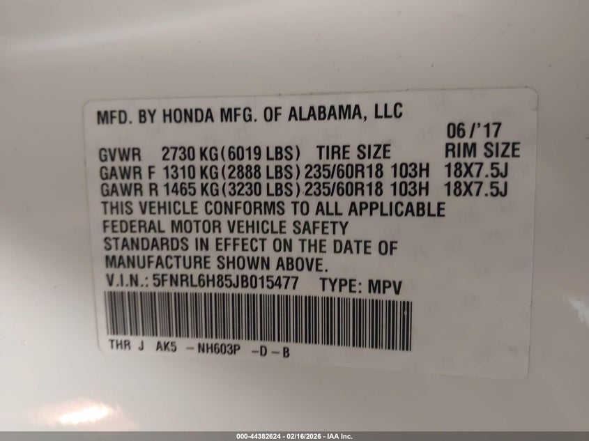 • 5FNRL6H85JB015477