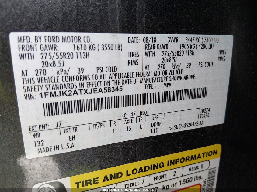 • 1FMJK2ATXJEA58345