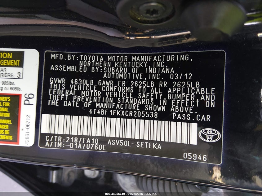 • 4T4BF1FKXCR205538