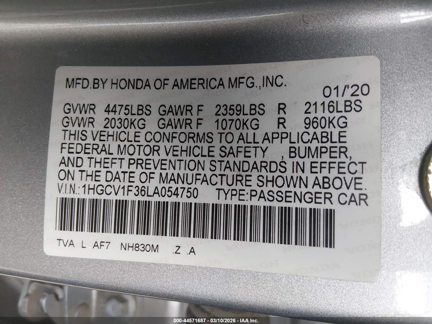 • 1HGCV1F36LA054750