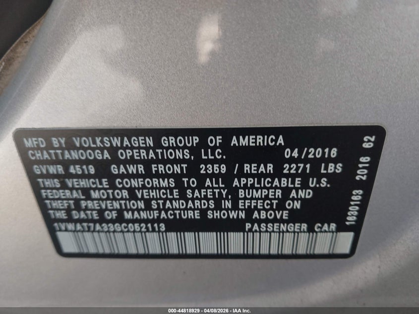 • 1VWAT7A33GC052113