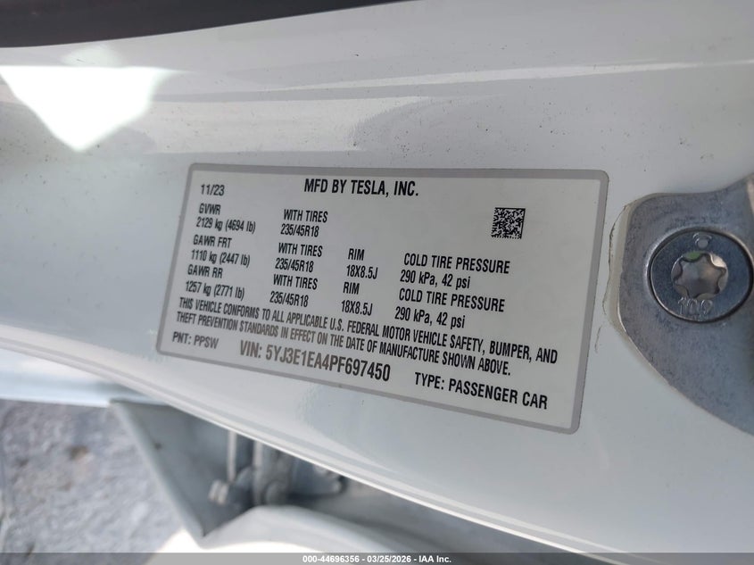 • 5YJ3E1EA4PF697450