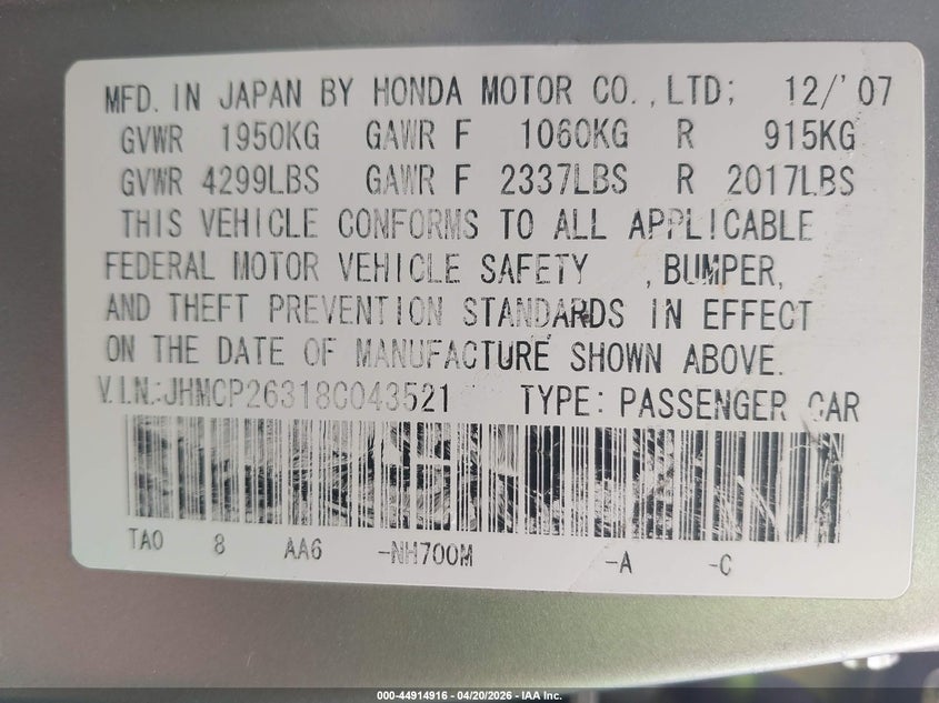 • JHMCP26318C043521
