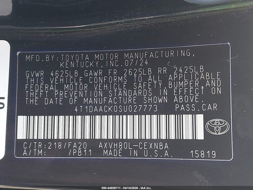 • 4T1DAACK0SU027773