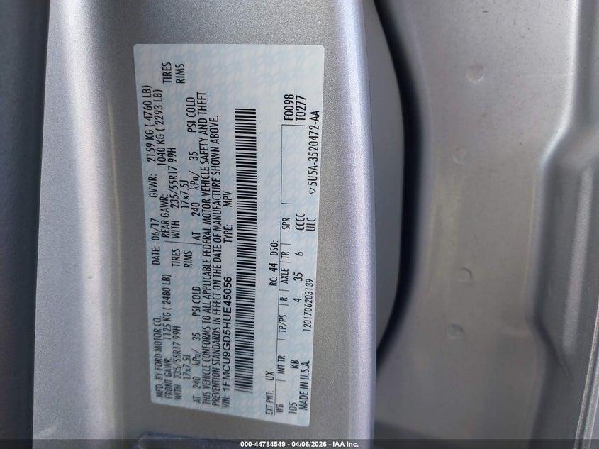 • 1FMCU9GD5HUE45056