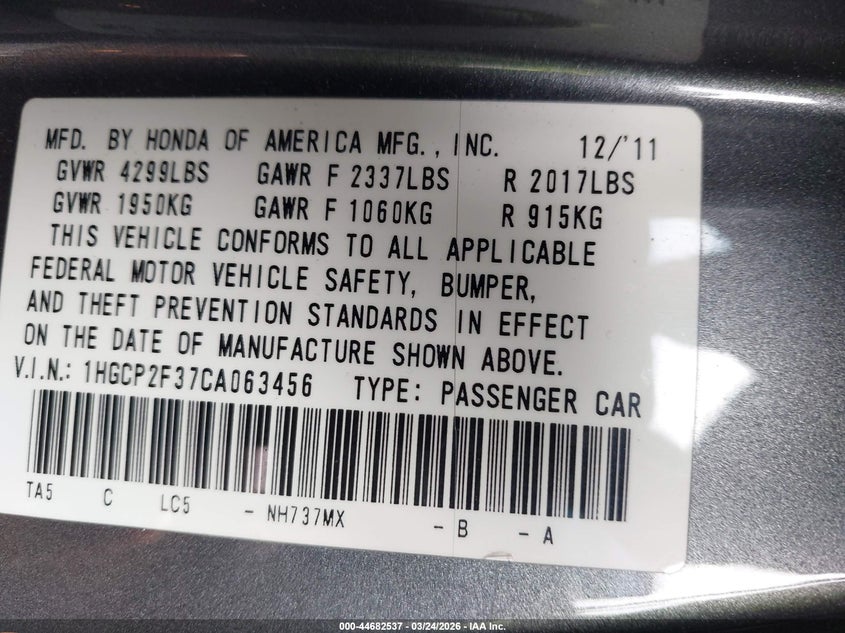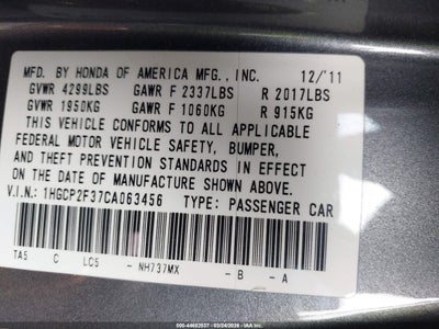 • 1HGCP2F37CA063456