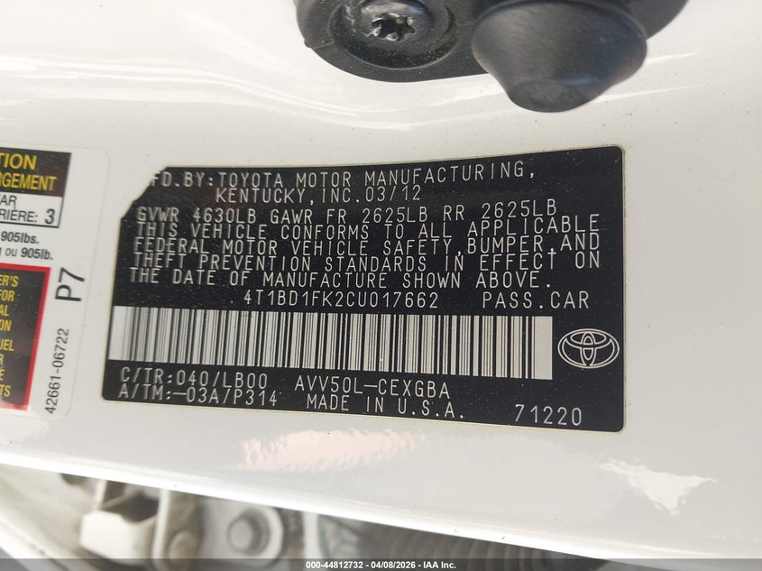 • 4T1BD1FK2CU017662