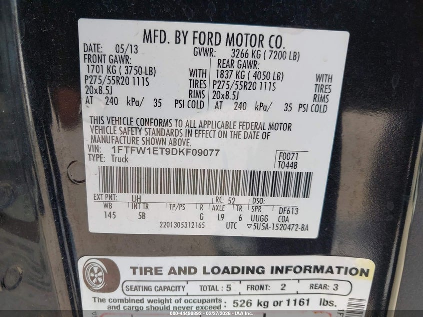 • 1FTFW1ET9DKF09077