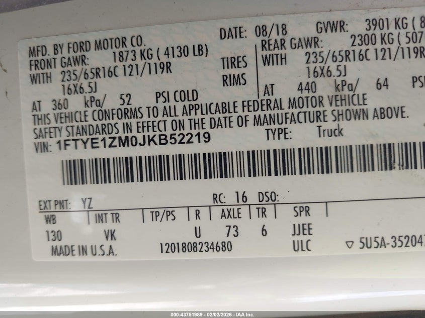 • 1FTYE1ZM0JKB52219