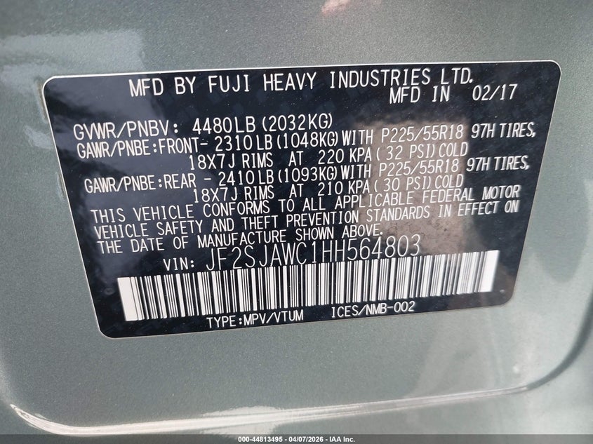 • JF2SJAWC1HH564803