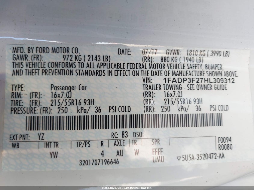 • 1FADP3F27HL309312