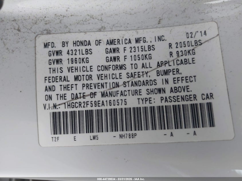 • 1HGCR2F59EA160575