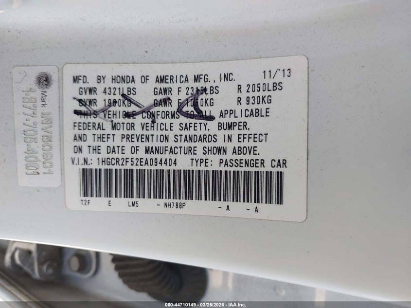 • 1HGCR2F52EA094404