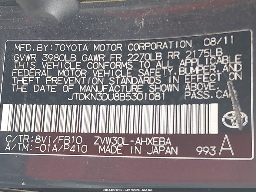 • JTDKN3DU8B5301081