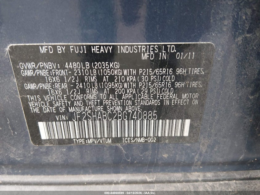 • JF2SHABC2BG740885