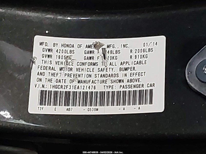 • 1HGCR2F31EA121476