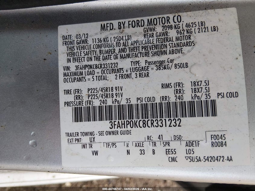 • 3FAHP0KC8CR331232