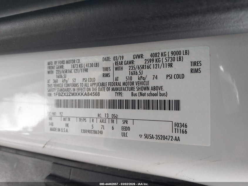 • 1FBZX2ZMXKKA84568