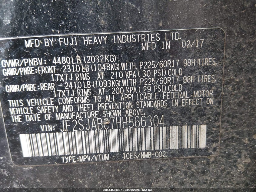 • JF2SJABC7HH566304