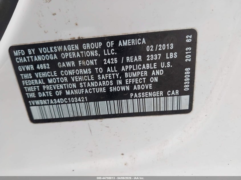 • 1VWBN7A34DC103421