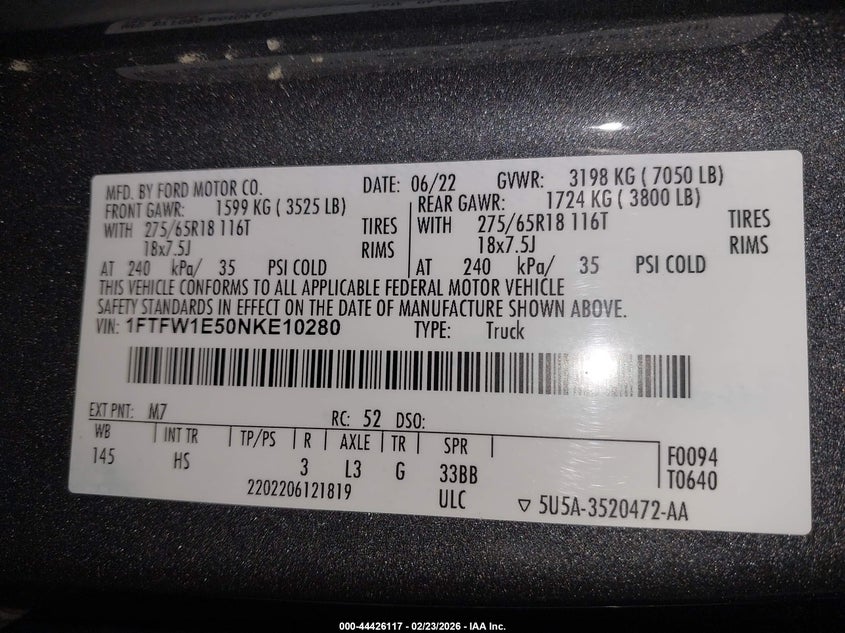 • 1FTFW1E50NKE10280