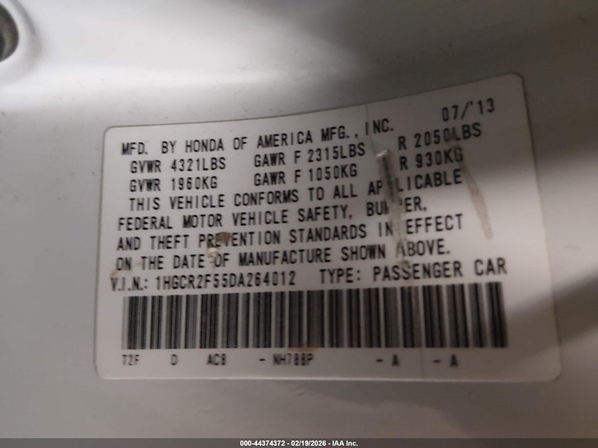 • 1HGCR2F55DA264012