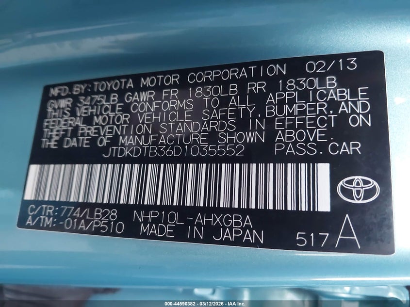• JTDKDTB36D1035552