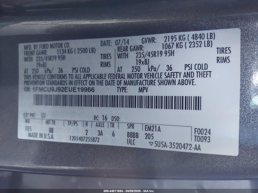 • 1FMCU9J92EUE19966