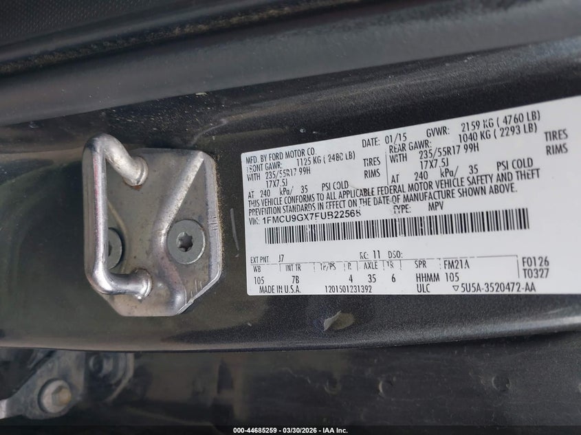 • 1FMCU9GX7FUB22568