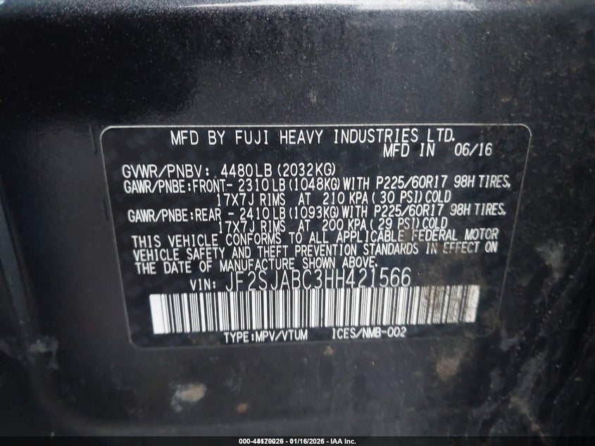 • JF2SJABC3HH421566
