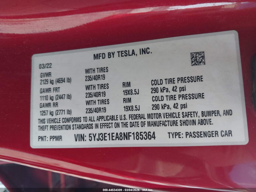2022 TESLA MODEL 3 REAR-WHEEL DRIVE for Sale in Moss Point, MS