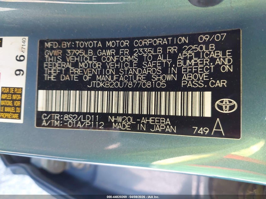 • JTDKB20U787708105