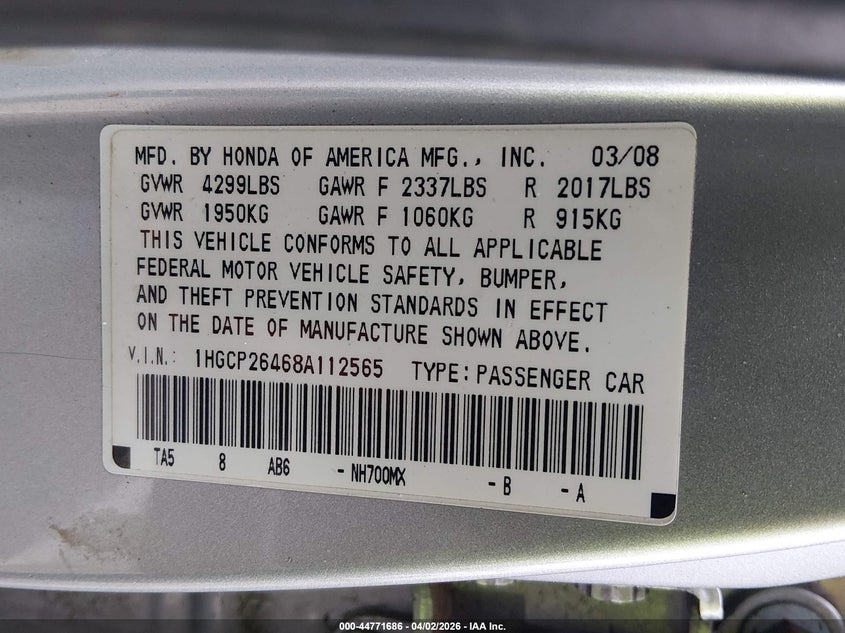 • 1HGCP26468A112565