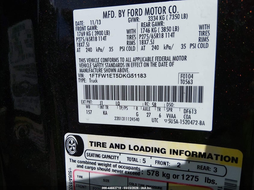 • 1FTFW1ET5DKG51183