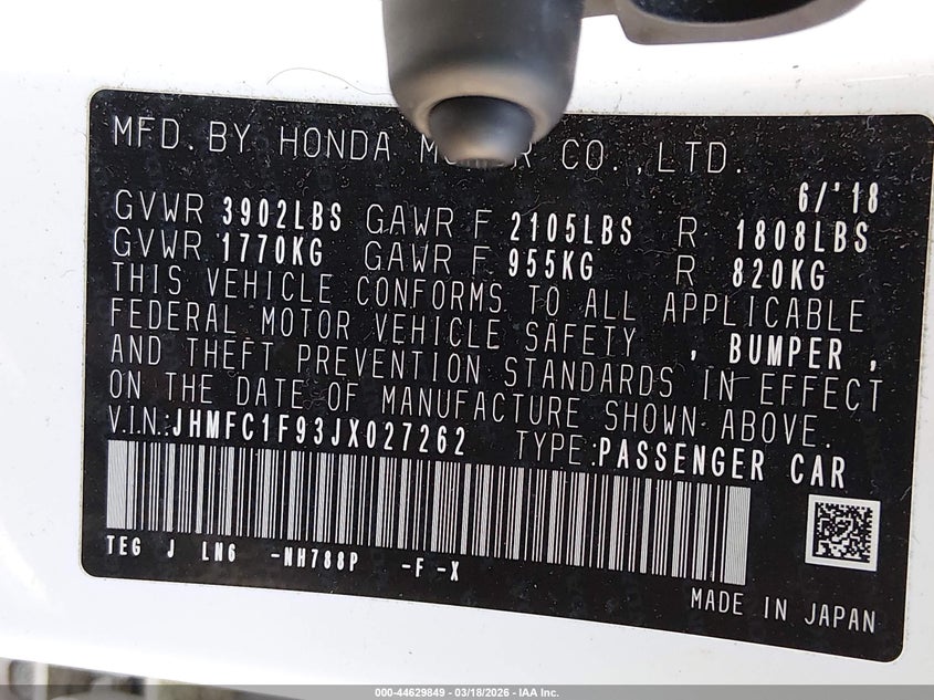 • JHMFC1F93JX027262