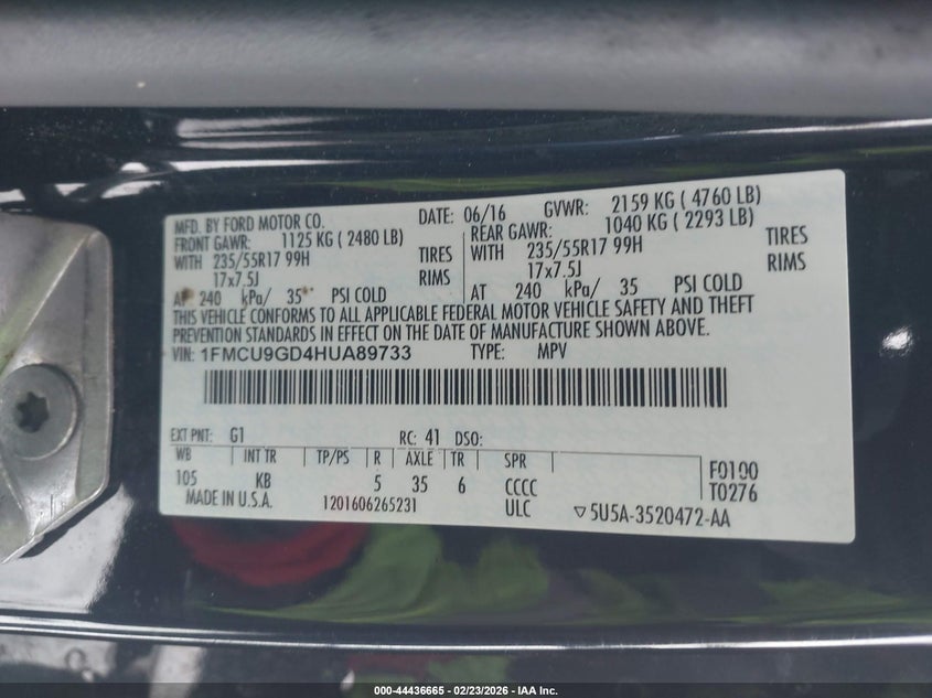 • 1FMCU9GD4HUA89733