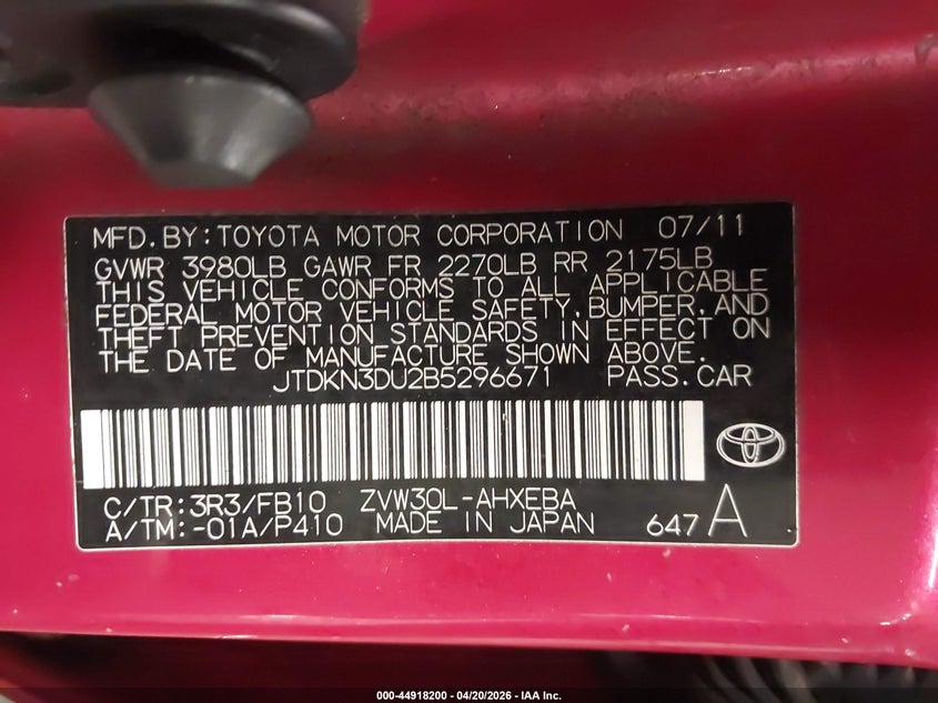 • JTDKN3DU2B5296671