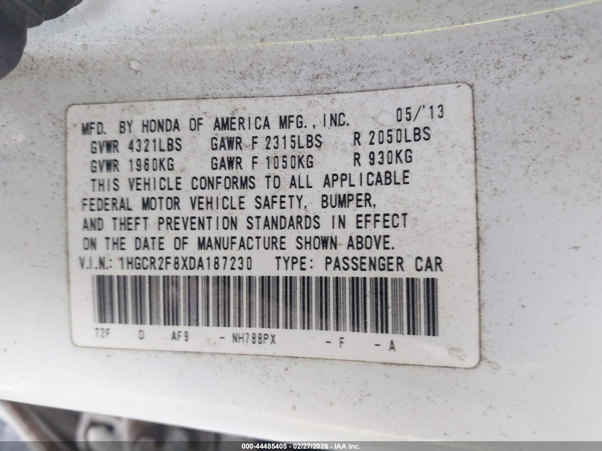 • 1HGCR2F8XDA187230