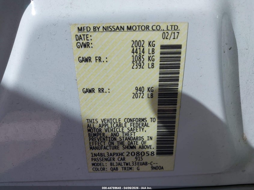 • 1N4BL3APXHC208058
