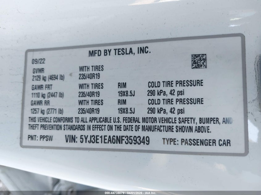 • 5YJ3E1EA6NF359349