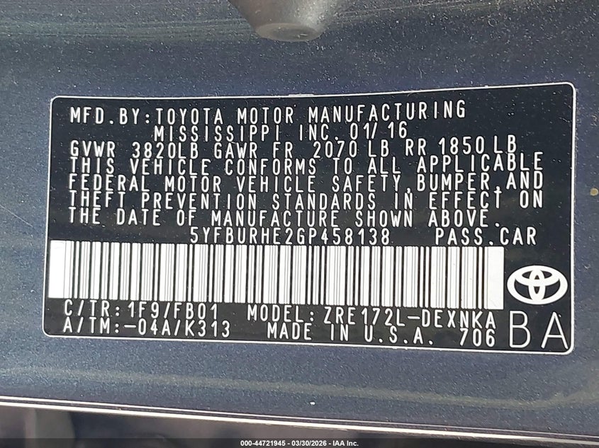 2016 TOYOTA COROLLA LE for Sale in Wilmer, TX