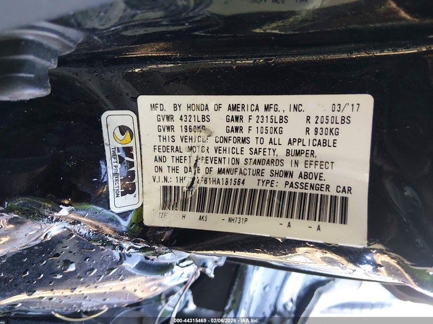 • 1HGCR2F81HA181564