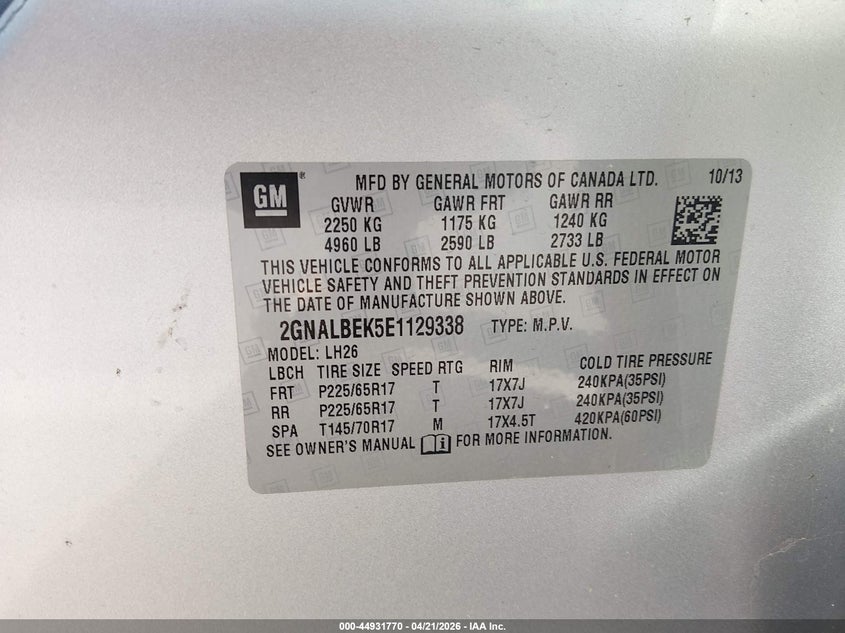 • 2GNALBEK5E1129338