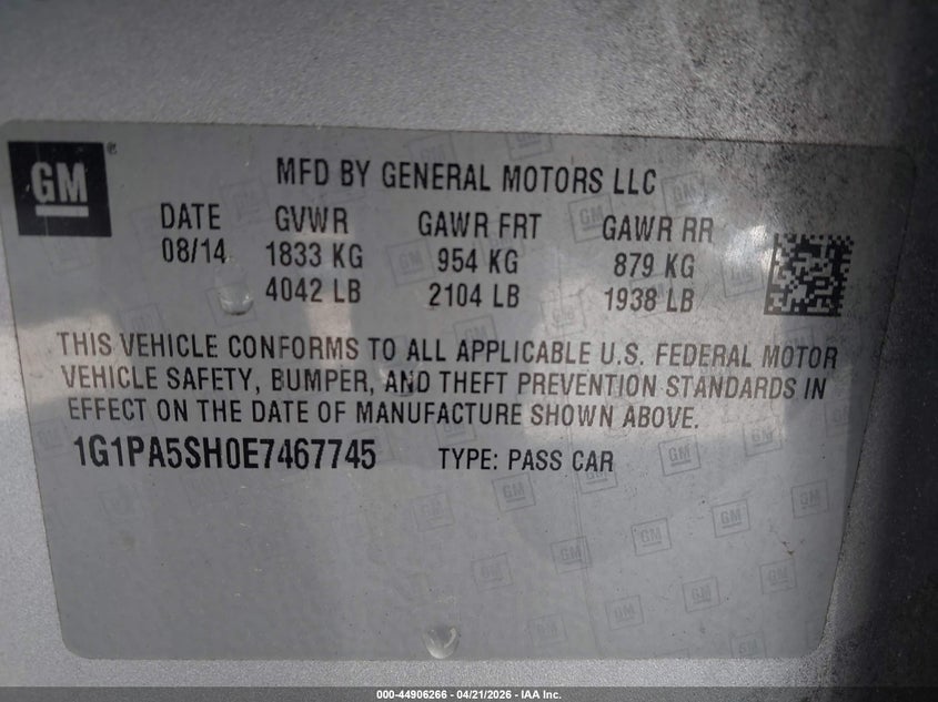 • 1G1PA5SH0E7467745