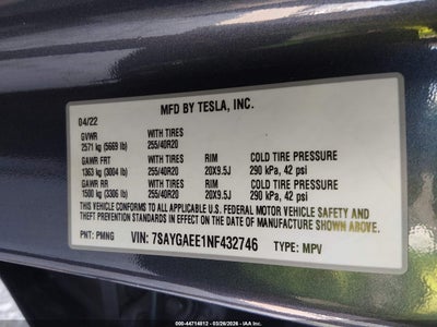 2022 TESLA MODEL Y LONG RANGE DUAL MOTOR ALL-WHEEL DRIVE for Sale in Electric Vehicle Auctions, None