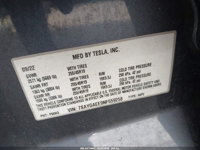 2022 TESLA MODEL Y LONG RANGE DUAL MOTOR ALL-WHEEL DRIVE for Sale in Electric Vehicle Auctions, None