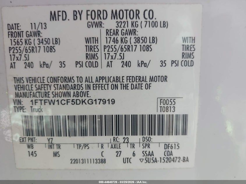 • 1FTFW1CF5DKG17919